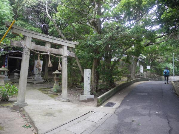 - ・山王神社から少しあるいた舗装路はあまり使われていないためか、コケむした箇所が多く、すべりやすい1