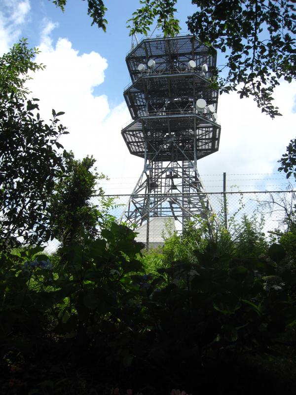 しばらくは歩道を歩き、一般車立ち入り禁止看板のある常光寺からNTT中継所(前山)まで登る。ここは幅広の道で砂利道。