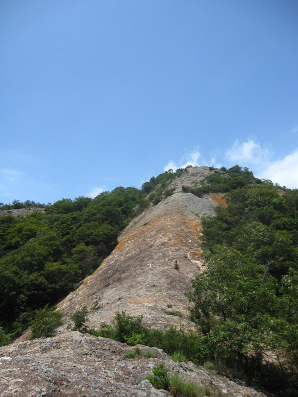 紅山の南入口から入ると、小野アルプスの山場である急な岩場。
