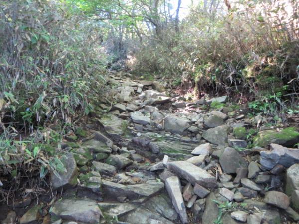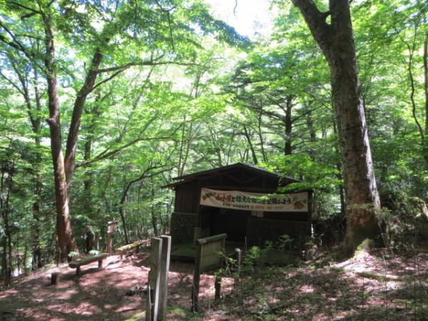 - 往路は、五合目小屋まで左岸を進み渓谷トレッキングコースを使用しました。五合目小屋手前で、渡渉地点があります。増水時は渡れないかもしれませんので、川の右岸を進む本登山道を使用して下さい。国観峠より山頂までは、滑りやすい粘度とスズタケの道です。山頂手前はガレ場も出てきますので、注意して進んで下さい。山頂より九合目小屋・テント場までは、小屋の裏手に降りてくるように一部ルート変更されています。至る所に踏み跡がありますので、霧などの悪天候時は気をつけて進んで下さい。