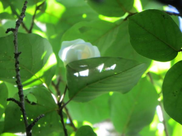 梅雨が明け、本格的な夏がやってきたこの日、今年最後の「森の貴婦人」オオヤマレンゲ観賞に久しぶりの祖母山へ!比較的距離が短い神原(こうばる)コースを使用しましたが、さすがに手強い道が待っていました。五合目小屋より急な尾根沿いをひたすら登り、国観峠へ。更に、ここから山頂までは、滑りやすい道が続きます。9合目付近より何本かオオヤマレンゲの木を発見しましたが、咲いているのは、高いところに一輪のみでした。大絶景の山頂の景色を堪能したあと、九合目小屋へ。小屋の付近にも多くのオオヤマレンゲの木があり、多くの花を観賞できましたが、なかなか究極の一輪に出会えず、来年に持ち越しです!なかなかタイミングが難しいのがこの花の特徴ですね。九合目小屋で出会ったかたの情報では、山頂より風穴コースへ下ったあたりのほうが、綺麗な花が未だ咲いているとのことでした。
