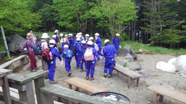 ちょうど一時間で蓼科山荘に到着。今までとは一転してガヤガヤ声がする!山荘の前で、中学生の団体が休憩していた。結局、山荘から山頂までクラスとクラスの間を歩かせてもらい、下山の山頂から山荘の間も次は小学生の団体とすれ違いとても賑やかなコースになった。子どもは本当に元気!!