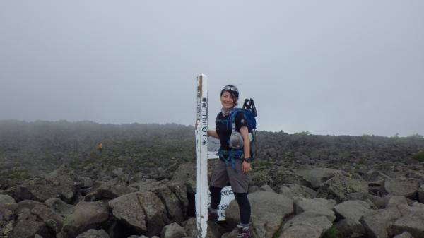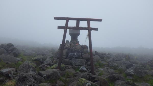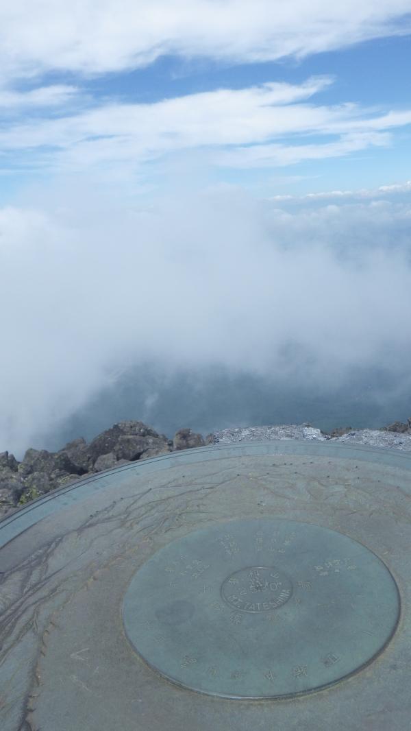 山頂は強風で何度かよろめいた。そして、すぐそこも見えないくらいのガス!本当はアルプスを一望できる大パノラマが広がっているらしいけれど、今日は久々に心の目を使った。見えた、気がした。