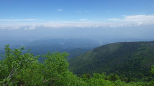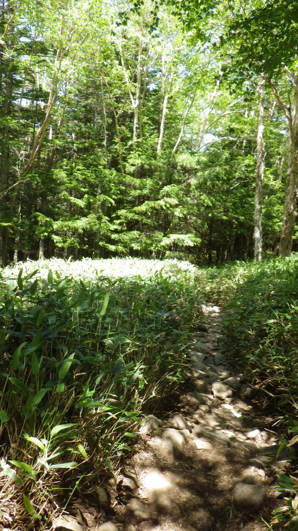 8:30鳥居をくぐって登山開始。林間を登って行く。ゆるやかな斜度でとても歩きやすい。晴れているが風が結構強く吹いていて、木々の間から時折涼しい風が届いたので、懸念していたより暑くない。そして思っていたより虫もいない。車の数で心配していたが、登山者にもあまり会わなかった。ご夫婦×二組、単独男性に出会ったきり。立ち止まると、鳥の声と風で木が揺れる音が響くだけの、とても静かな登山道だった。癒される。