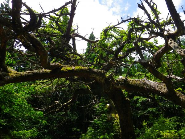 - 林道終点>20分>笠松>60分>杖立峠>23分>展望岩>6分>杖立山山頂>6分>展望岩>17分>杖立峠>29分>笠松>12分>林道終点