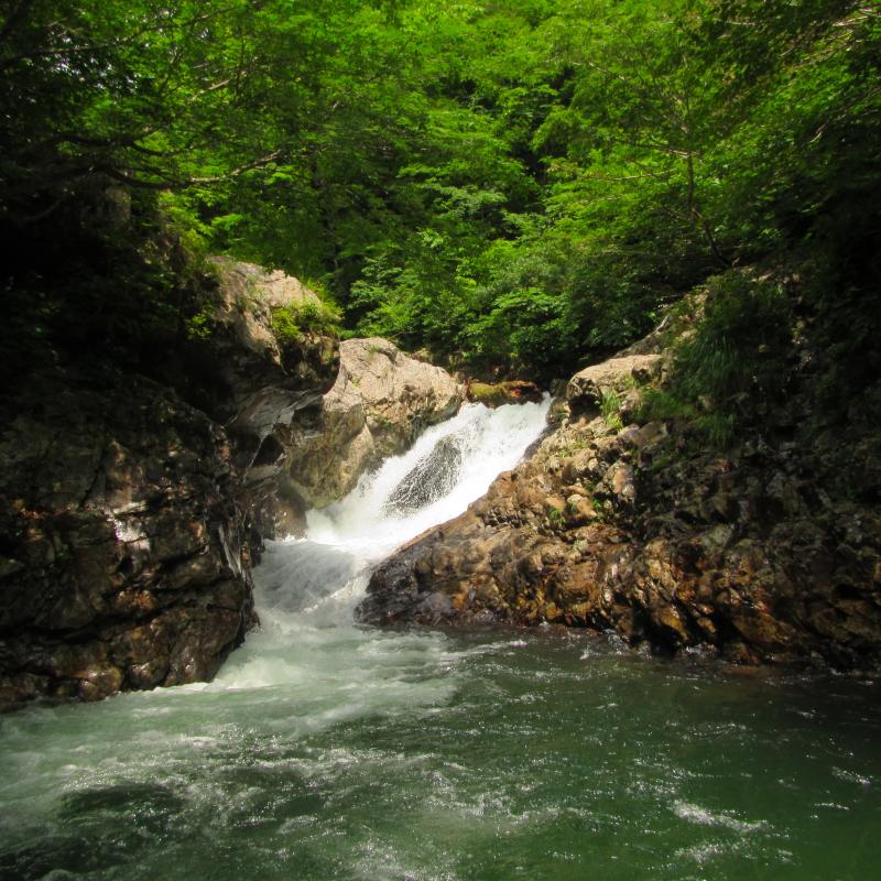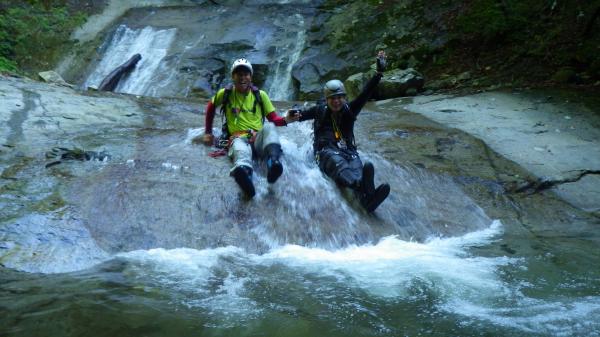 - 沢は泳ぎは少なく登りがメインです。滝はナメが多く、中には苔でヌメヌメシしてフリクション効かせて登るのが大変な個所もありました。