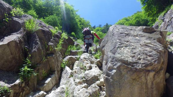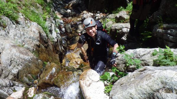これまでの沢と比べると水量があったので、今回が初めての本格的なシャワークライミングとなりました。特にナメ滝!ただ歩くでもなく、クライミングでもなく、何ともいえないあの感覚は沢靴ならではなんですかね。
