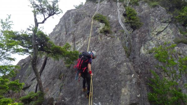 ただ今回一番の衝撃は下りに使った鶏冠尾根。沢がメインのはずが実は下りもメイン級!学生時代にもう漕ぐこともないだろうと思っていたシャクナゲのヤブとの再会。初の10m級の懸垂下降…。