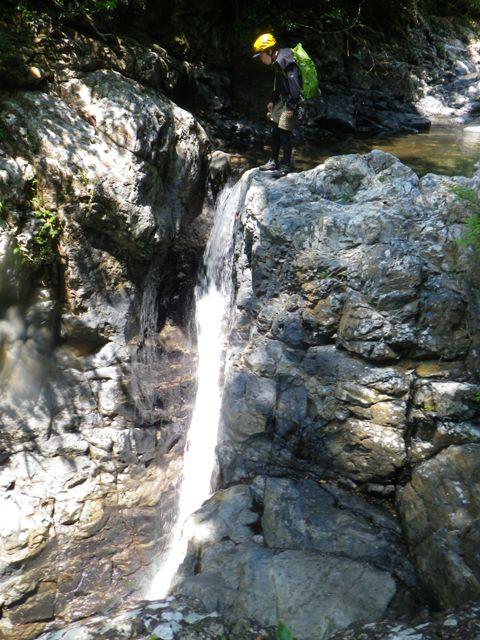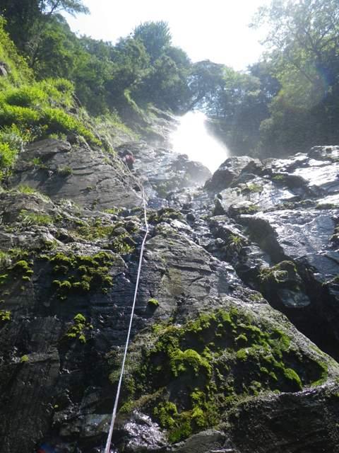 2Pを終えたらあとはロープはいりません。慎重に登って滝の落ち口に抜けます。