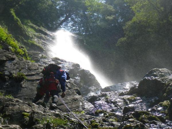 大滝の登攀には40m以上のロープ、カミングデバイスがあるといいです。