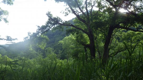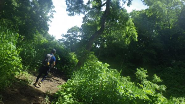 6:45 トイレ脇の小道から登山開始。沢のせせらぎを聞きながら、平坦な木道を歩いてゆく。鬱蒼と生い茂る濃い緑の間を爽やかな朝の空気が流れる。爽やか~!原始の森といった雰囲気で、ひょっこり熊と遭遇するのではとドキドキしていた。