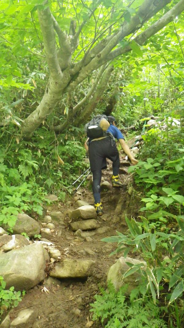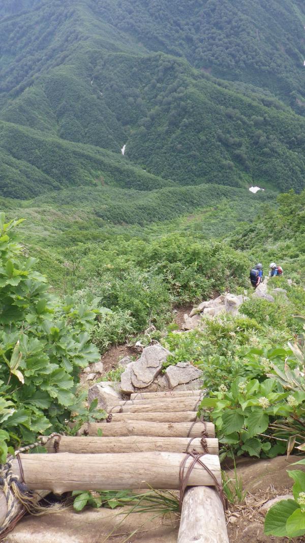 - 駐車場からしばらくは平坦な木道を歩く、歩きやすい。荒菅沢の雪渓をトラバースして渡るが、雪がしまっていて固い。慎重に歩けばアイゼンは不要なほどだった。(雨の日は注意)雪渓後の林間は、登山道がぬかるんでいて粘土状に。滑りやすいので注意。その後はハシゴや岩場をよじ登って行くコース。高度感が結構あります。