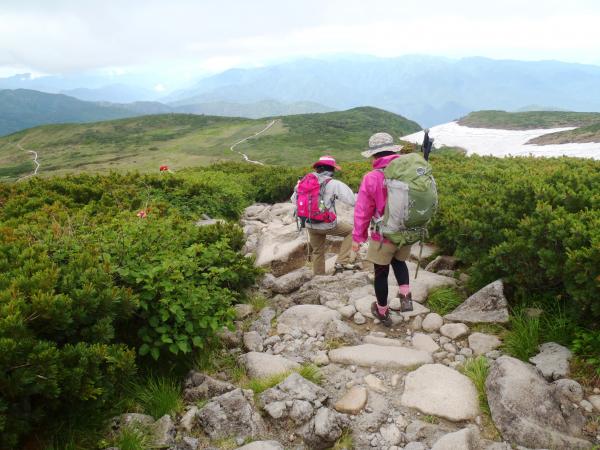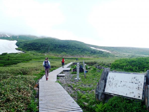 展望歩道は4回ほど雪渓歩きがあるので、不安な人は軽アイゼンがあるとよいです。