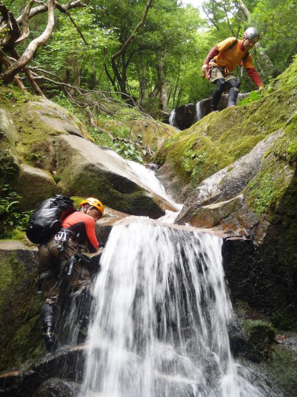 滑りそうな滝でロープを3回出してもらいましたが、なくても登れそうです。