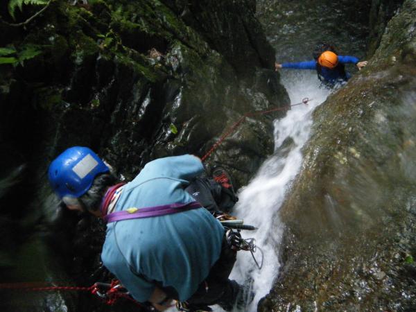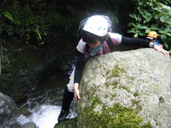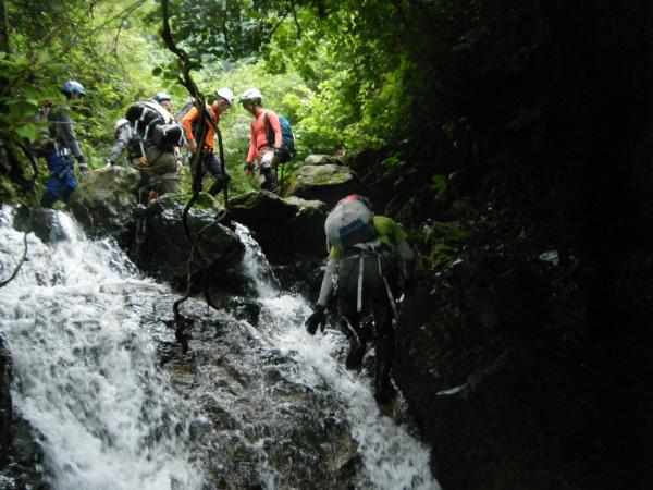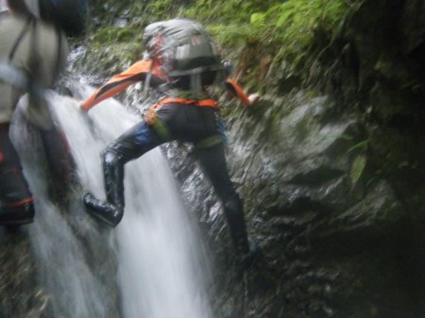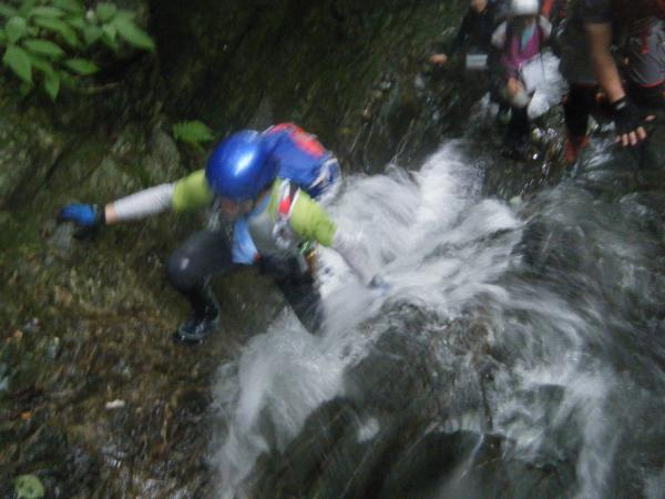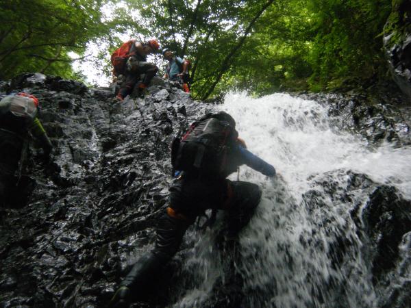 スタート地点の葛葉ノ泉からは数メートルレベルの大小様々な滝を登りながら、ガイドさんの指導の下、沢の基本を学びつつ、それでいて沢の楽しさを感じさせながら絶妙なガイディング。プロです。