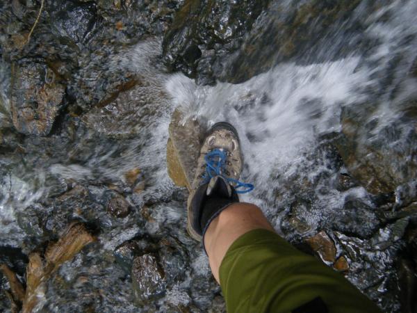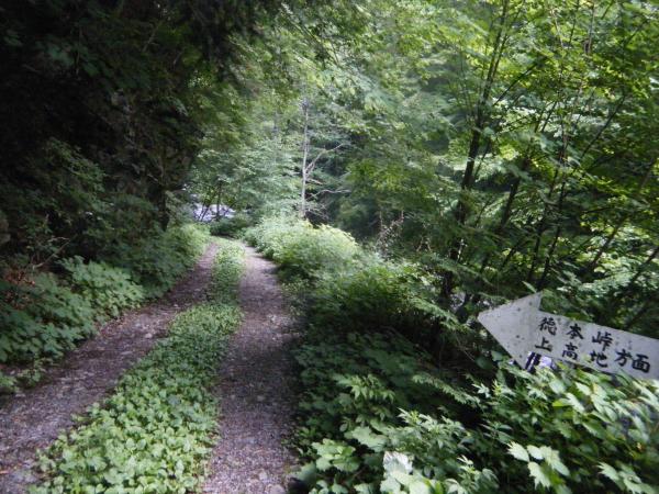 島々バス停⇒(100分)二俣トンネル⇒(65分)中間ベンチ⇒(15分)瀬戸下橋⇒(55分)岩魚留小屋⇒(110分)力水の水場⇒(65分)徳本峠小屋/テント泊