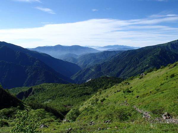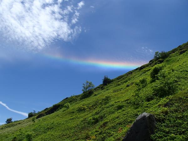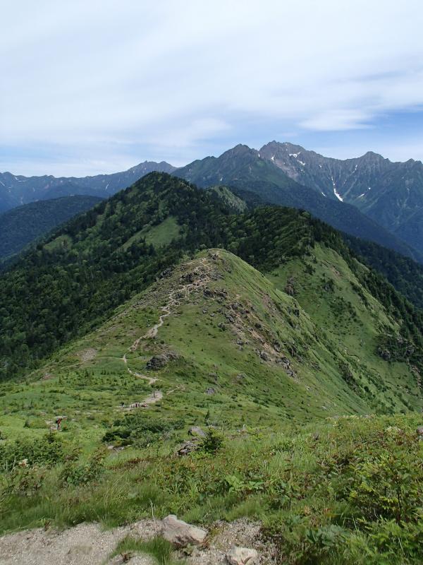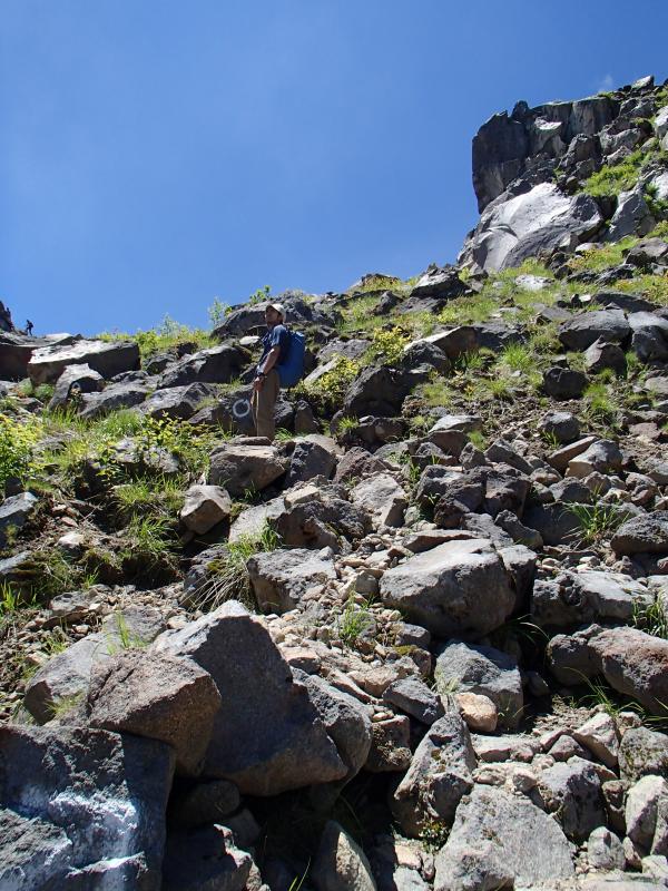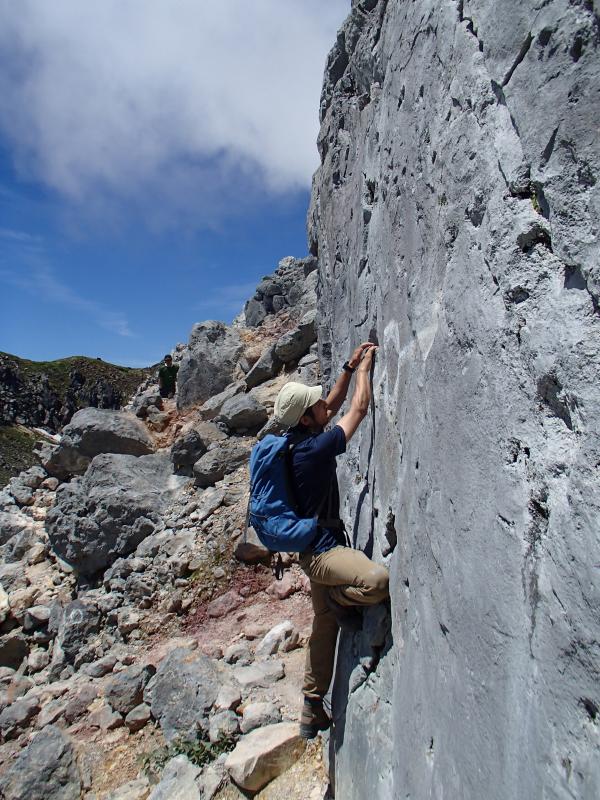 そこからの登りは一面緑のカール状になっておりとても気持ちのいい道です!南峰と北峰はともにゴロッゴロの岩場です。変化に富んでいてとても楽しい山
