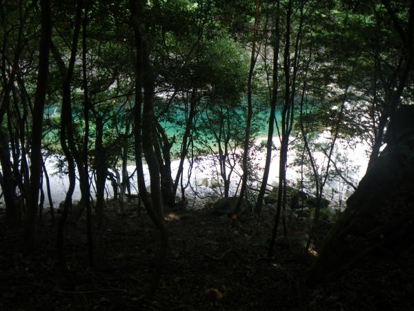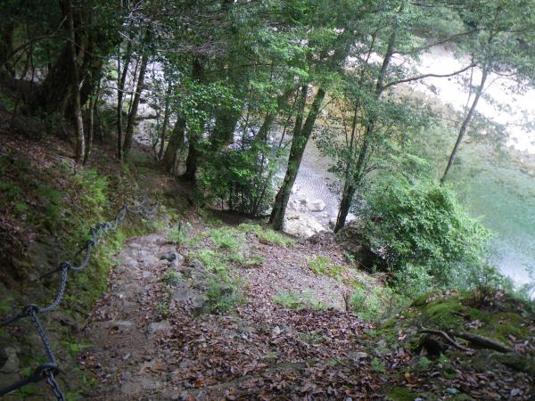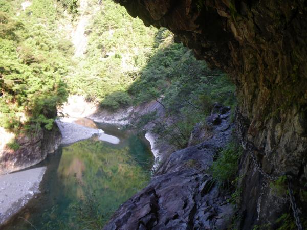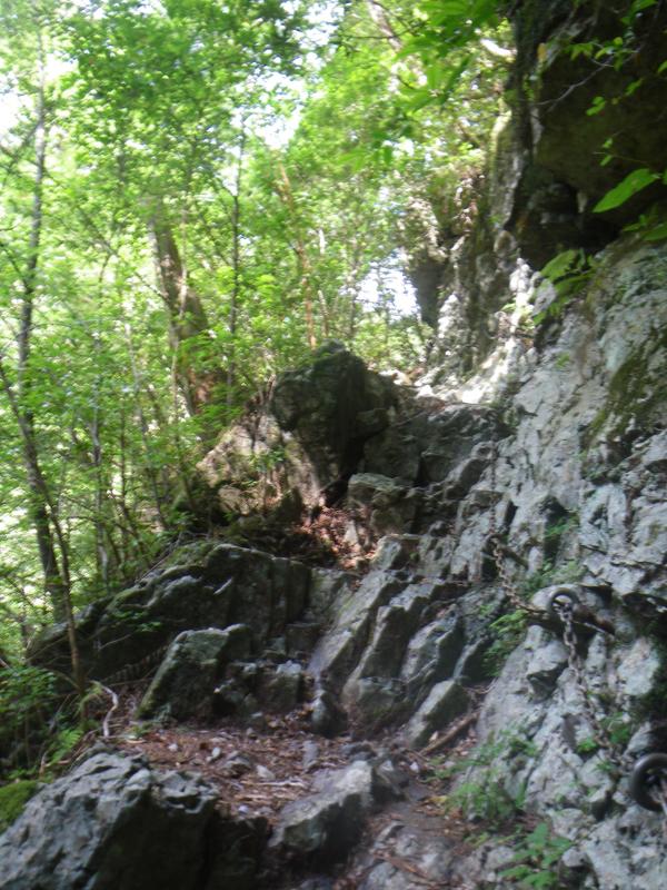 ④岩盤をくりぬいて作った道があり、鎖場があるがまるで、下廊下を思い出す光景で、スリップ注意