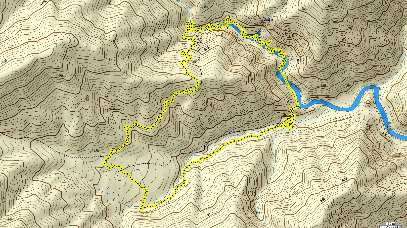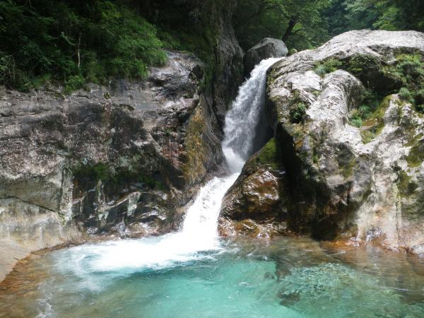 - 駐車スペース(77分)前鬼川入渓(30分)10m滝(14分)ナメ床(70分)垢離取場