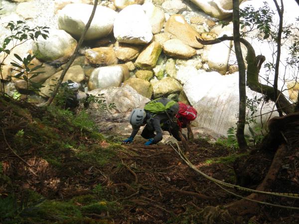 入渓の際、支流を下らずショートカットして前鬼川に入渓しましたが下降でロープが必要です。