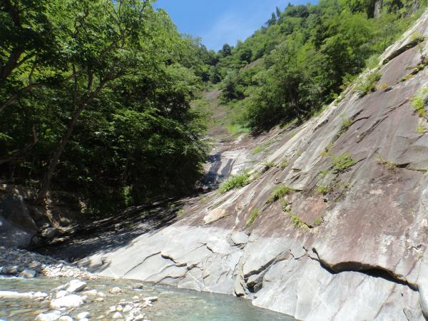 「魚留の滝」から少し登ると、いよいよこの沢の一番有名な見どころ「千丈のナメ」です。
