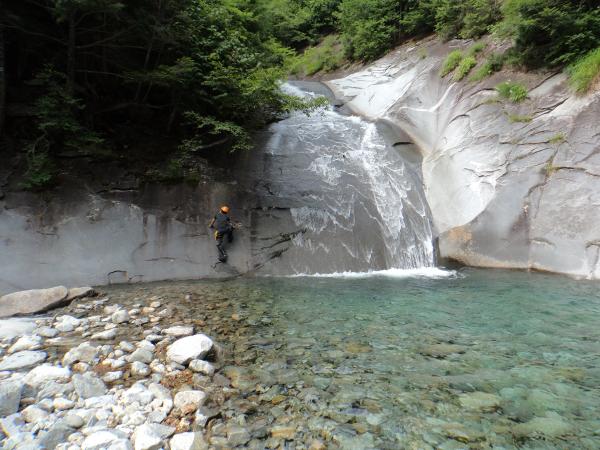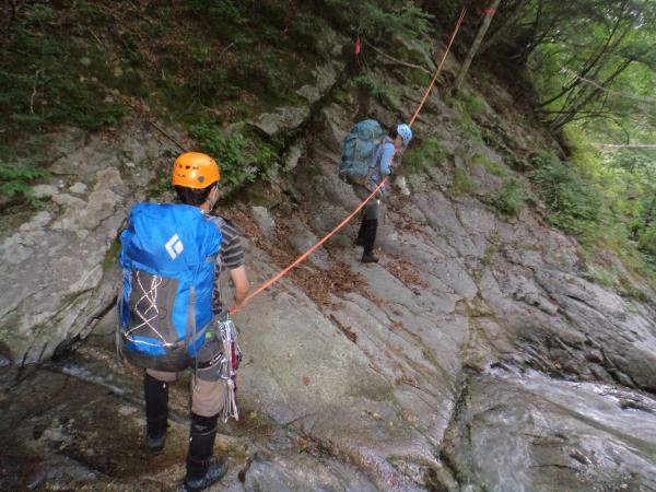また、高巻きから沢に戻る時も注意が必要。ロープがあったほうがよい。