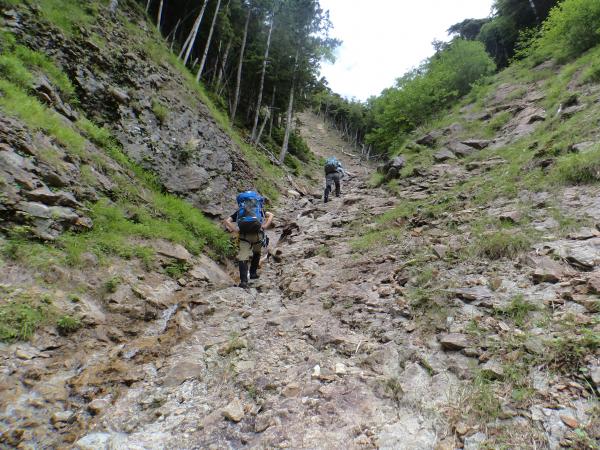 甲武信ヶ岳の登山道は全体的にかなり急坂。