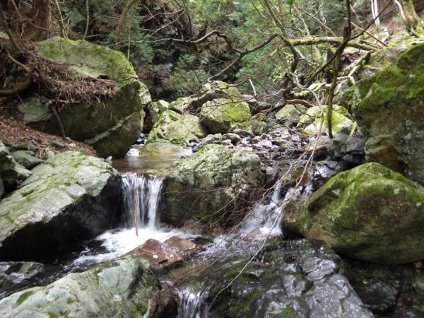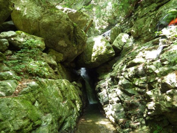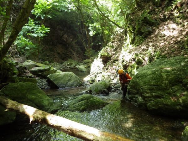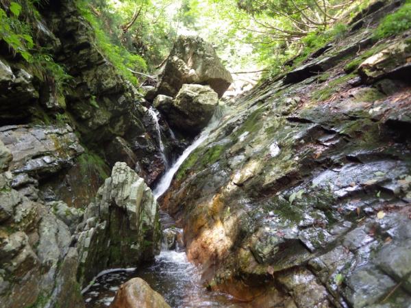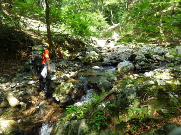 15mの滝を越えるとほぼ小川のようになり、登山道にぶつかった地点で遡行終了しました。
