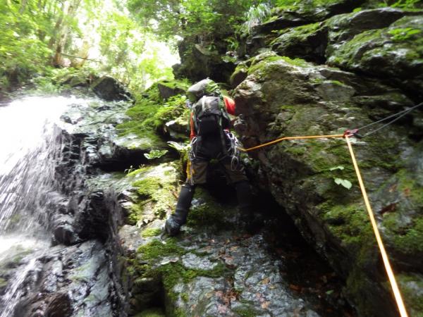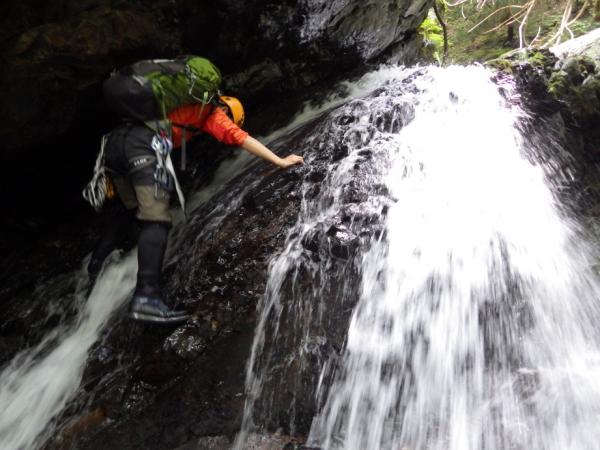 滝の上部はロープで確保しましたが、しっかりとしたホールドがありそんなに難易度は高くなかったです。