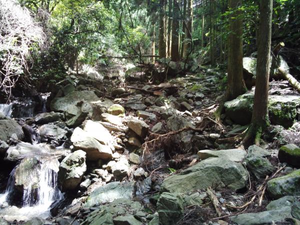 - 登山口駐車場(40分)5合目駐車場(40分)水舟(40分)屏山(15分)奥の院分岐(15分)古処山(15分)水舟(55分)登山口駐車場