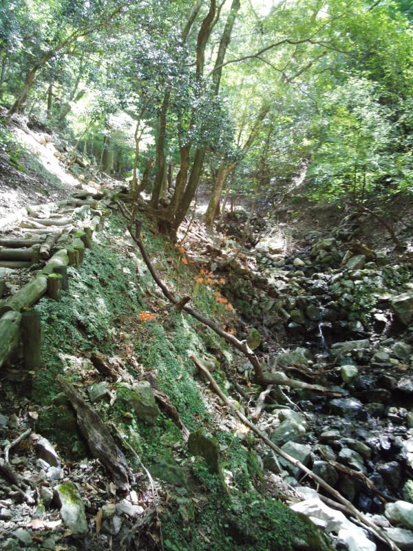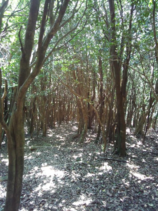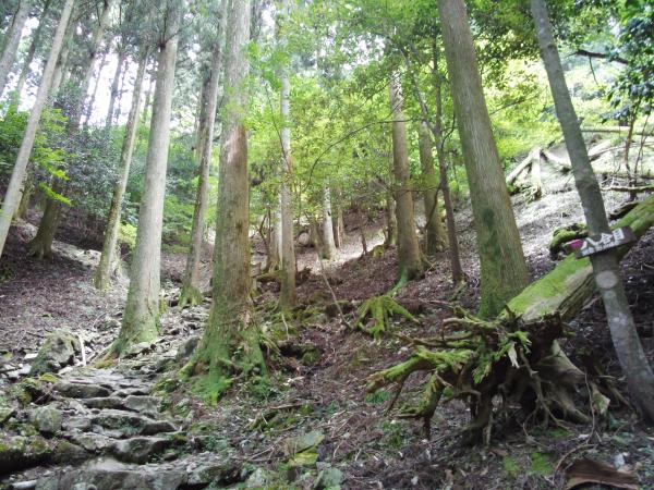 稜線に出ても林の中で、景観はほとんどありませんが、暑い夏の日差しを遮ってくれて快適です。