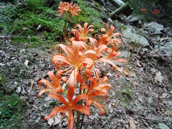 更に登り、水舟周辺にもオオキツネノカミソリが群生しています。