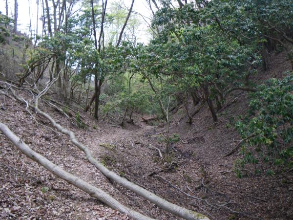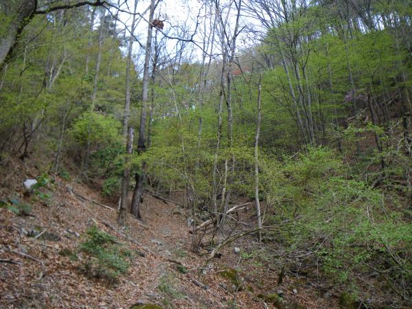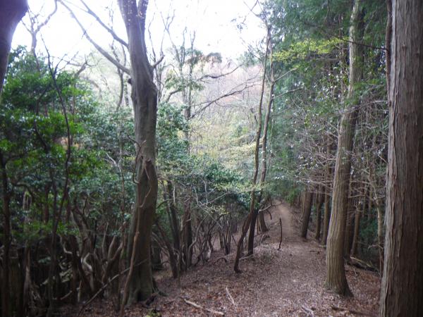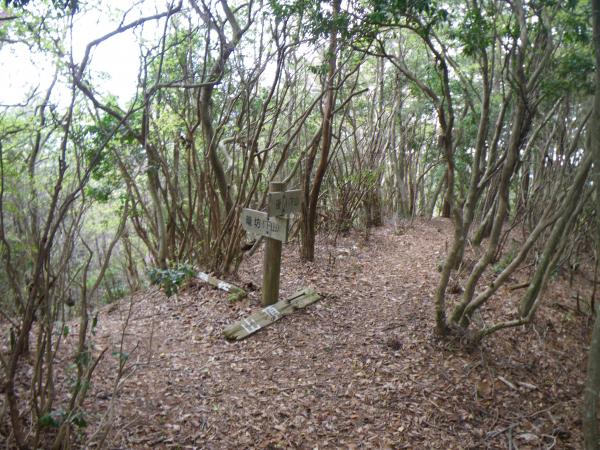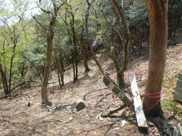 ③竹谷コース中間部、右手にネットがでてくる付近がわかりにくく、そのまま直進して、尾根方面に進む(マーキングが消え、植林?の踏み跡も多くわかりにくい)。