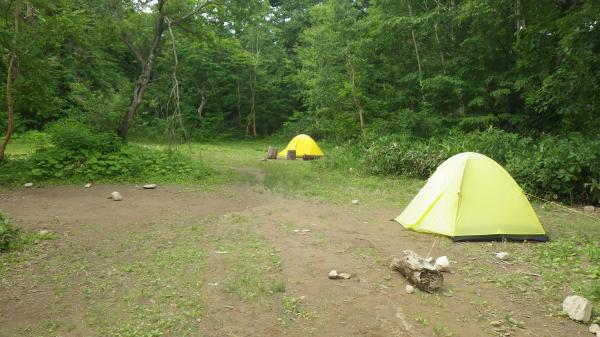 龍宮小屋の手前で休んでいた時に、反対側から来た方がすぐそこで熊を見たと仰っていた。そのすぐ後に出発したが、黒い塊を見つけることはできなかった。正午前に今夜のキャンプ地見晴キャンプ場に到着した。早々にテントを張り、テント越しの日差しの中お昼寝をした。サーチ不足の為知らなかったのだが、嬉しいサプライズ。外来客にも時間を絞って入浴を許可してくれるのだという。夕方暗くなる手前に入りに行った。その後すぐに就寝。