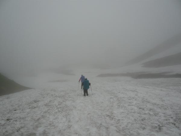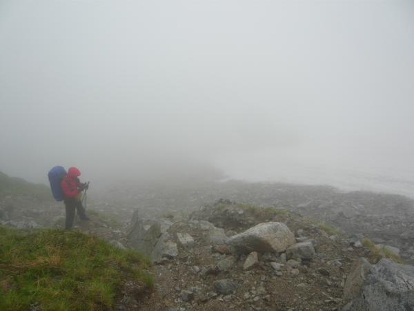 視界が悪いと、簡単な分岐でも迷いやすいので地形図を確認しながら進みましょう。