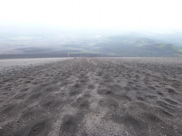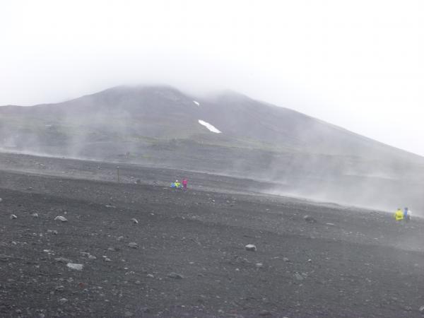 それからまた砂走館へ戻り、朝食をいただきました。下山は大砂走り。うわさには聞いていましたが、本当に一歩で2~3m下れるんですね!途中、飛ばし過ぎて風になった気分にもなりました。疾走というイメージ通りです。2日目は雨に降られず良かったです。ごてんば市温泉会館で疲れを癒してから帰りました。