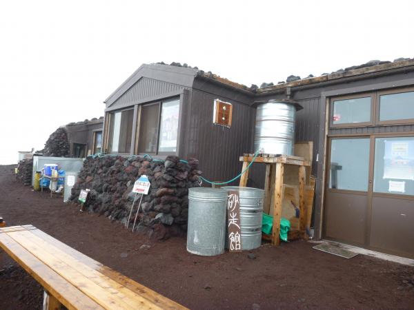 出発からおよそ5時間半、ようやく今晩泊まる山小屋、砂走館に到着しました。小屋ではまず靴とザックをしまうビニール袋を渡されました。3段のうち、2段目の布団でした。先ほどまでずっと雨に打たれていたので、小屋の中はほっとしました。