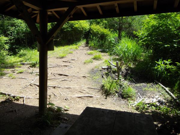 8合目手前には、あずまやと水場があり、のんびり休憩できました。