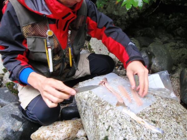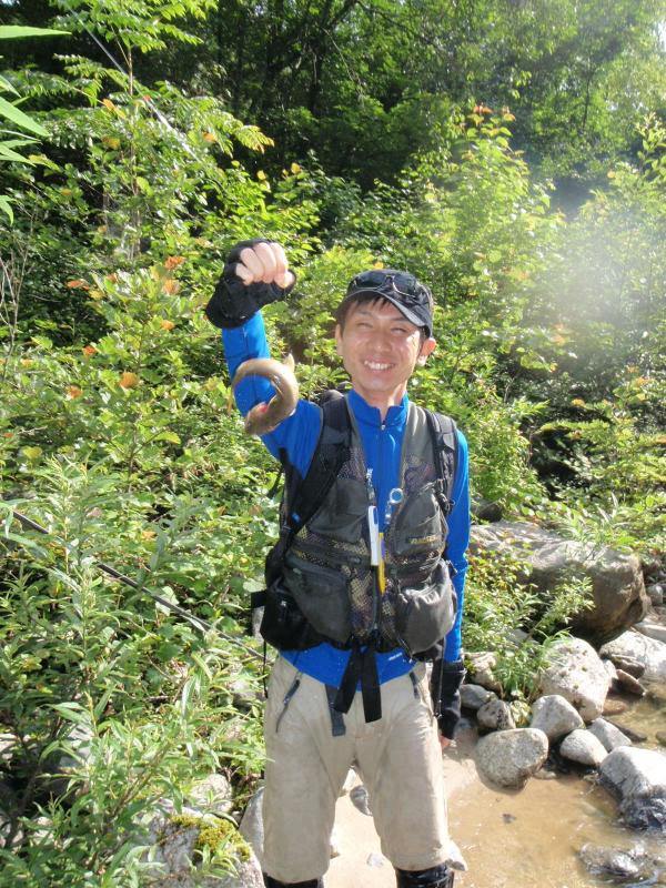 ダムのない隣の浦川に100%渓流釣りに興じる。