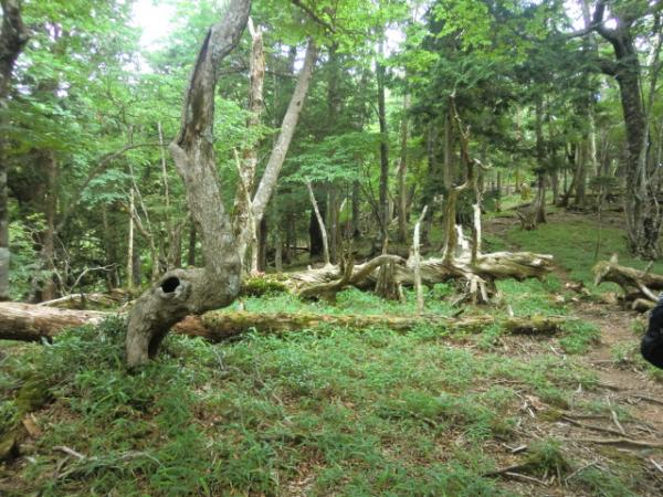 - 行者環トンネルから奥駈道出合には沢沿いコースと尾根道がありますが、行きは尾根道。帰りは沢沿いコース。2コースともきれいな登山道ではなかったです。急な斜面もあるため、急坂が続きます。弥山小屋の手前あたりから整備された木の階段の登山道が続き登りやすいです。