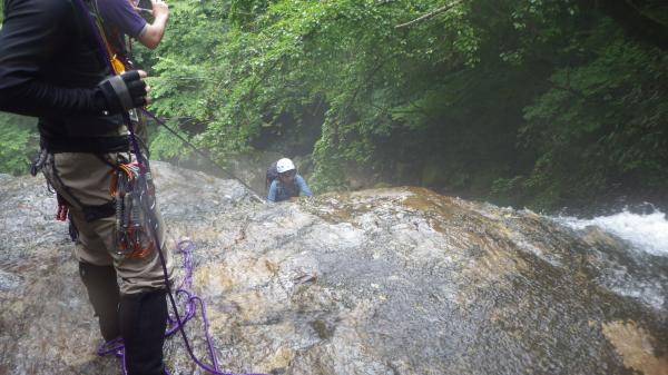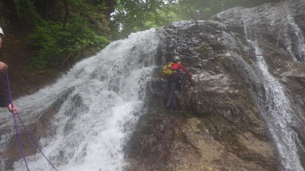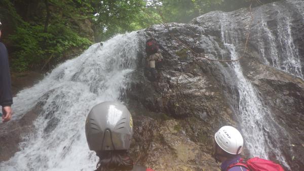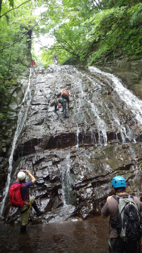うっわ~。ドキドキしながら確保してもらいつつ、滝登り。