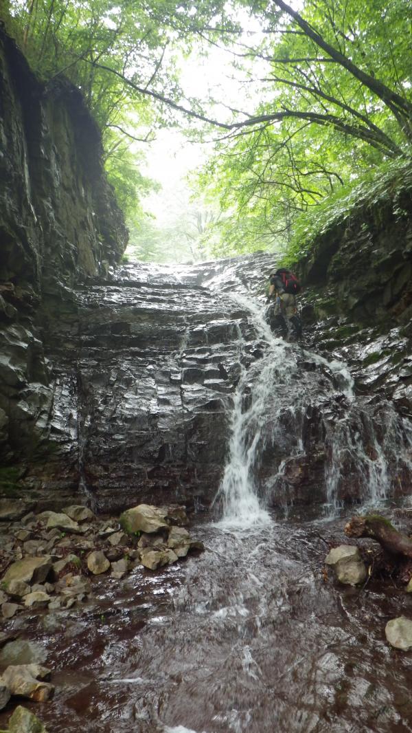 雨は降っていますが小降りになってきたかな?、まずは入渓地点の咆哮霹靂ノ滝まで向かいます。