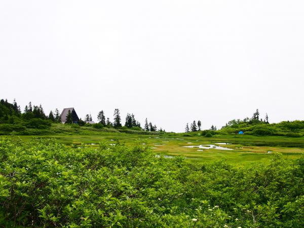 テン場は小屋の近くに2か所ありますがどちらも狭いです。15張張れると地図に記載されているが、果たしてそんなに晴れるのだろうか・・・。そして蚊が多い。