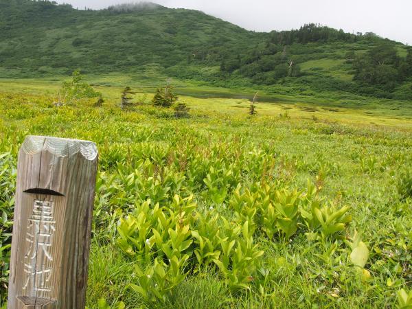 出発してすぐに高谷池が現れる。お花も続々と出てくる出てくる。
