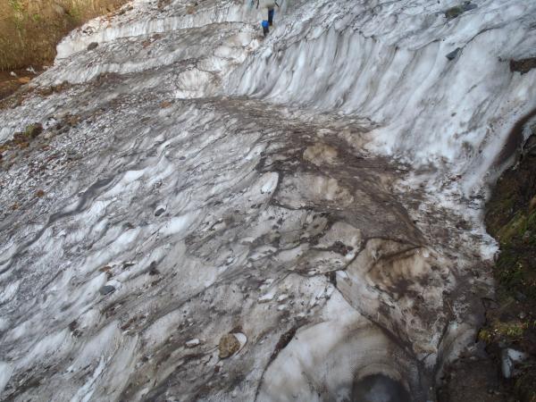 柏原新道、雪渓がワンポイントあるがステップがきれいに切られアイゼンは不要