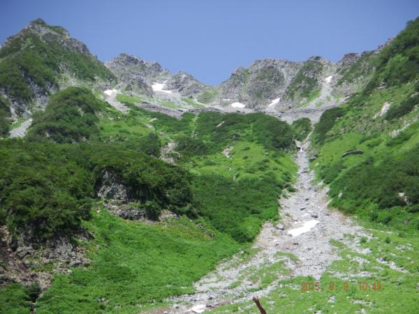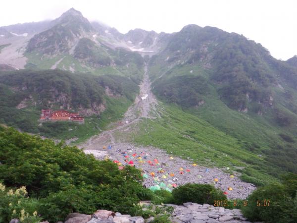 二日目 涸沢(80)東稜分岐のガレ場(50)東稜(110)北穂高岳(100)涸沢(250)上高地