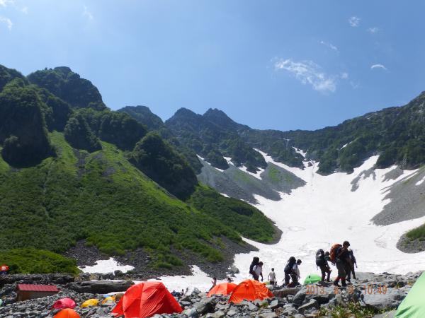 - 涸沢付近の雪渓がかなり残っていました。軽アイゼンやスットクを使い登ると安心です。