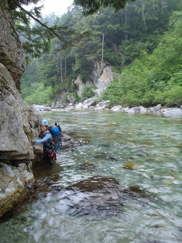 - 赤木沢出合いまで本流は状況を見ながらの渡渉が必要。今回は水量的に問題なく渡渉できました。4Mの滝は左岸を巻かずに反転流に飛び込み通過。