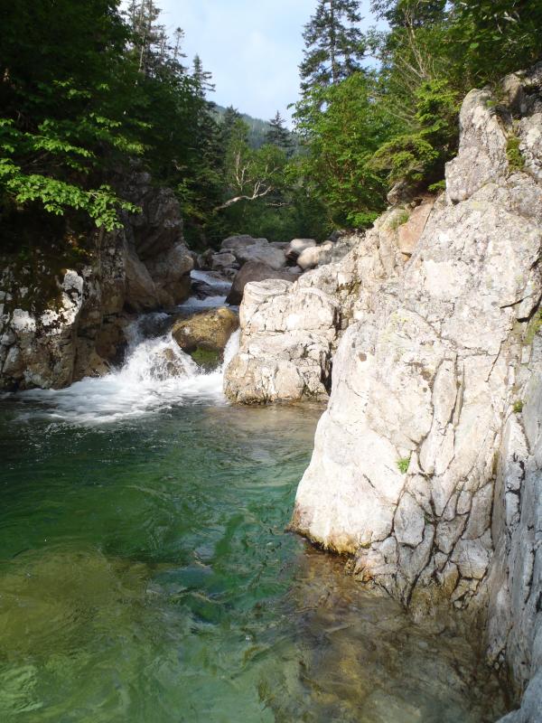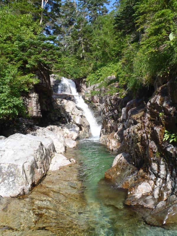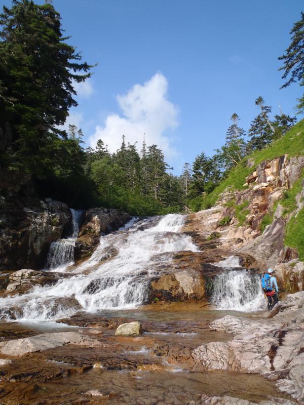 有名で人気の沢ですが、当日みかけたのは私たちの他1パーティーのみで、静かでゆっくりと時間がながれていました。