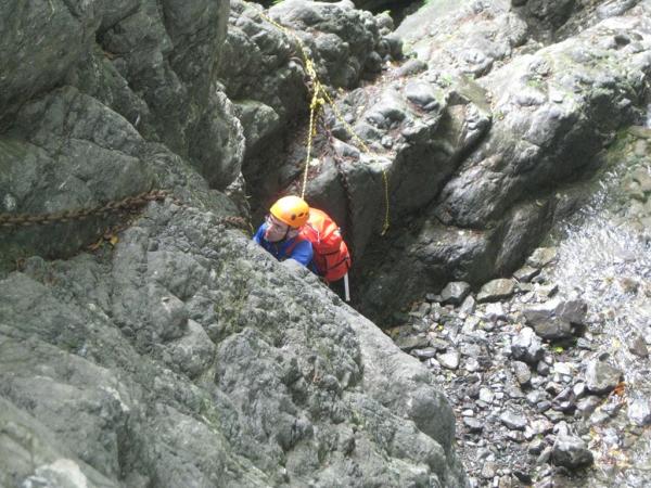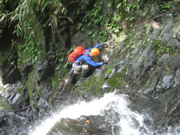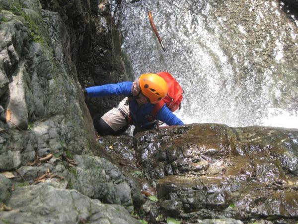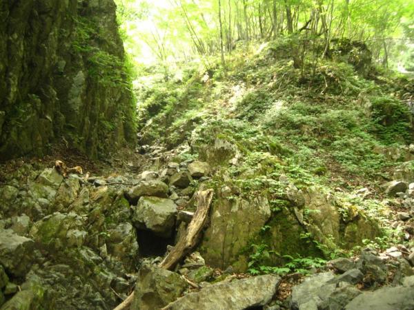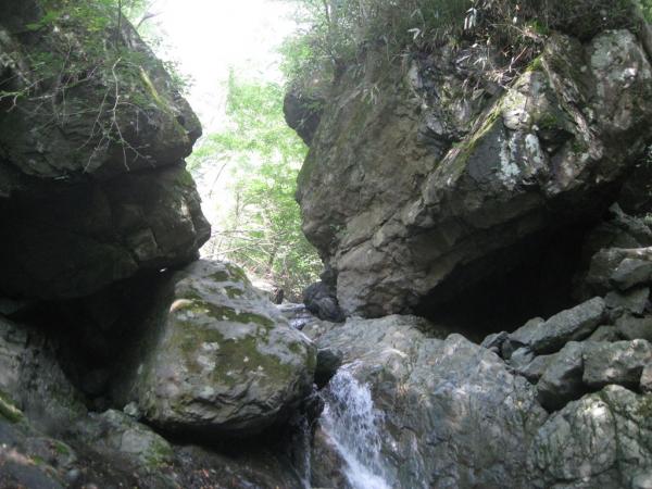 - 本谷・源次郎沢共に水量は多くなくせいぜい太ももまで浸かる程度。源次郎沢は全体的にガレている。詰めも泥の斜面で歩きにくい。一度、本谷から抜け道を通って戻る時に遥か上から落石があり、もの凄いスピードで石が降ってきた。 他にパーティは無し。